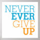Uma mensagem positiva de afirmação para compartilhar com o mundo, Nunca Desista! Azul e laranja de cor Nunca Desiste da inscrição. Mantenha-se forte e nunca desista!