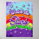Veja o poster de tipografia colorido das Estrelas com aspas inspiradoras. Estilo de vintage retro poster com ditado inspirador e mensagem positiva, estrelas e arco-íris. para o quarto de meninas, quarto de bebês, quarto de crianças.