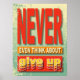 Nunca pense em desistir do design de tipografia da Vintage com citações motivacionais, vibes positivas e retrorreflectoras.