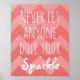 A poster de citação impressão motivacional para inspiração entre as cores apresenta um padrão de corais cor-de-rosa brilhando em segundo plano e lê Nunca deixe ninguém cavar seu brilho em letras brancas e brancas. Um presente inspirador perfeito para o quarto de garotas adolescentes, e decoração feminina para um adolescente da moda. Um presente de formatura único para ela também.