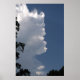 Bonito e gigantescas nuvens brancas fluffy contra um céu azul com as copas das árvores em primeiro plano com o sol a espreitar. Mãe Natureza num lindo dia de verão de Nova Jersey. Fotografia original © 2012 TamiraZDesign.