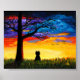 Poster Nuvens Coloridas Paisagem Árvore Negra