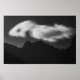 Fotografia da paisagem de longa exposição em preto e branco de nuvens acima das montanhas.
