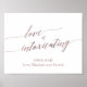 Este elegante amor por caligrafia rosa de ouro é um sinal intoxicante é perfeito para um casamento simples. A design cor-de-rosa-pincelada apresenta um sinal minimalista decorado com tipografia da folha de ouro rosa, romântica e caprichosa. Personalize este sinal de bar aberto com os nomes da noiva e do noivo. Nota: Este design não apresenta folha de ouro rosa real. É um gráfico de alta qualidade feito para se parecer com folha de ouro rosa.