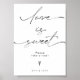 Apresentando uma tipografia elegante e uma mensagem romântica, esta placa é certamente um complemento de qualquer tema de casamento ou decoração. Use-o para guiar seus convidados para a mesa de sobremesa ou buffet doce, ou simplesmente mostrá-lo como um doce lembrete do seu amor.