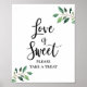 O AMOR É DOCE, POR FAVOR, PEGUE UM Sinal TREAT que apresenta um belo design de caligrafia verde para o seu casamento, chá ou festa.