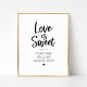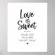 Adicione um toque de elegância moderna à sua mesa de sobremesa com este símbolo minimalista de amor é doce. Perfeito para uma celebração contemporânea ou romântica, este símbolo personalizável complementa qualquer tema de casamento com sua mensagem de design e eterno limpa. Crie uma configuração na moda e digna do Instagram que seus hóspedes adorarão.