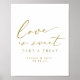 Um sinal elegante para o seu casamento ou mesa de sobremesas de noivado, com 'amor é doce' em letra falsa de caligrafia moderna. Personalize com seus nomes e data de casamento. A cor de todo o texto pode ser editada.