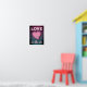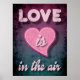 O amor está no poster da tipografia da Air Cute com citações de meninas, vibrações positivas, estilo retro poster vintage para o quarto de meninas com coração cor-de-rosa e citação de amor.