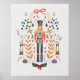 Um divertido e clássico poster Nutcracker com tons de terra e vermelhos profundos em um fundo branco no estilo de papel d'água para causar impacto em sua casa.