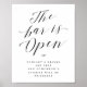 Sinal de Casamento de Script de Caligrafia Elegante - O bar está aberto - as bebidas desta noite são gratuitas e as histórias de amanhã serão inestimáveis! Entre em belas letras de rico e seu texto personalizado. Um na moda, mas simples, design formal em preto e branco ou qualquer cor de fundo que você escolher. Basta clicar no link personalizar mais, mostrado na área de personalização de texto à direita, e escolher seu fundo de cor personalizado. Este poster de placa faz com que seja rápido e fácil criar acréscimos incríveis à decoração do casamento. Os sinais podem ser ampliados, há muitos tamanhos a serem escolhidos, assim como opções para enquadramento e correspondência personalizados. sinalização personalizada de casamento. ~ Verifique meu compro ou coleção abaixo para ver mais sinais complementares do seu casamento
