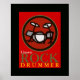 Drummer rochoso clássico, legal impressão para decorar as paredes da sala dos músicos - a cor vermelha de fundo pode ser alterada ("personalizar botão")