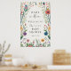 Sinal de boas-vindas do chá de panela Floral. Design apresenta uma fronteira de flores silvestres. Personalize com suas informações ou clique em "Clique para personalizar mais" para editar estilos de fonte, tamanho e cores.