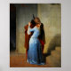 Poster com a pintura italiana The Kiss (1859). Também conhecido como Il Bacio, um casal se abraça num beijo romântico. Hayez usa simbolismo para exprimir secretamente a aliança entre França e Itália. Um presente maravilhoso para amantes do Romantismo italiano.