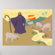 Ilustração do bom pastor cuidando de seu rebanho por um riacho de vale. Imagem disponível em vários presentes e produtos. Eu sou o bom pastor. O bom pastor põe sua vida para as ovelhas - John 10:11