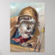 Uma bela imagem vintage de um cão vestido de marinheiro. Ele está vestindo suas peles de petróleo e está fumando um cachimbo de argila.