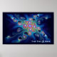 Uma imagem fractal multicolorida (rosa, verde, azul, amarela), que abre espaço sobre um fundo azul escuro. Uma interpretação de como o céu noturno pode parecer a um xamã siberiano enquanto em transe se comunicando com os espíritos. Adicione seu próprio texto.