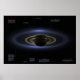 No dia 19 de julho de 2013, em um evento celebrado pelo mundo todo, a nave Cassini da NASA deslizou para a sombra de Saturno e virou para a imagem do planeta, sete de suas luas, seus anéis internos — e, ao fundo, nosso planeta, a Terra. Com os poderosos e potencialmente prejudiciais raios solares eclipados por Saturno, as câmeras de bordo da Cassini foram capazes de aproveitar essa única geometria de visão. Eles adquiriram um mosaico panorâmico do sistema Saturno que permite aos cientistas ver detalhes nos anéis e em todo o sistema à medida que são iluminados de volta pelo sol. Esse mosaico é especial por marcar a terceira vez que nosso planeta foi fotografado do sistema solar externo; a segunda vez que foi fotografado pela Cassini a partir da órbita de Saturno; e a primeira vez que os habitantes da Terra foram avisados antecipadamente de que sua foto seria tirada a uma distância de tal excelente. Em vez de sobrepor a imagem com texto, as informações são fornecidas acima e abaixo. É permitido um x 40" de 60". Para impressão de alta resolução a 30" x 20", que ajustado um quadro poster padrão. Crédito: NASA/JPL-Caltech/SSI