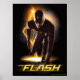 Veja o Flash agachado em uma posição inicial em movimento, um raio atingindo o chão atrás dele.