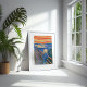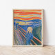 O Gritar (1895) do pintor norueguês Edvard Munch é uma das obras mais icônicas e emocionalmente intensas da história da arte. Esta obra-prima expressionista mostra uma figura em pé na ponte, aparentemente no meio de uma poderosa crise emocional, com uma face distorcida, agonizada e mãos levantadas aos templos. O pano de fundo apresenta céus turbulentos e giratórios em laranjas vívidas, amarelos e azuis, criando uma sensação de caos e inquietação. O gritar da figura é quase palpável, capturando o sentimento de angústia existencial e desespero. O uso de cor, linhas ousadas e formas abstratas por Munch evocam uma intensa experiência psicológica, fazer O Gritar é um símbolo da ansiedade moderna e da condição humana. Use as ferramentas de design para adicionar texto personalizado ou personalizar a imagem.