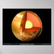 Esta imagem mostra uma vista cúbica da possível estrutura interna de Vênus. A imagem foi criada de Mariner 10 imagens usadas para a camada atmosférica externa. A superfície foi tirada de imagens de radar Magellan. As características internas de Vênus são inferidas a partir de medições do campo de gravidade e do campo magnético por magalhães e naves espaciais anteriores. A crosta é mostrada como vermelho-adark, o manto como vermelho-laranja-claro e o amarelo-núcleo. O que se sabe sobre o interior venusiano vem principalmente das naves Venera, Pioneer Venus e Magellan. Antes desses exploradores, os cientistas pensavam que Vênus teria processos tectônicos semelhantes aos da convecção do manto da Terra. Vênus e Terra são ambos semelhantes em tamanho e presumíveis a mesma composição. Vênus, porém, não mostrou sinal de tectonismo em placas e parece ter uma placa de solteiro que a torna muito diferente da Terra.