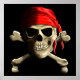 Crânio clássico original e Crossbones, O Jolly Rodger", com bandana vermelha doo rag.