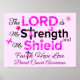 Cancer inspiracional de mama, citação de "O Senhor é a minha Força e o meu Escudo e "Fé Esperança de Amor Conhecimento do Cancer da Mama" para sobreviventes do câncer de mama e combatentes que têm fé em Deus.