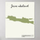Esta imagem apresenta um mapa simplificado de Java Island, parte da Indonésia, com uma design minimalista. Java fica a sudeste da Malásia e Sumatra, a sul de Borneo (Kalimantan), e a oeste de Bali. Está dividido em quatro províncias: Java Oriental, Java Central, Java Ocidental e Banten. O estilo limpo enfatiza sua forma geográfica e localização no arquipélago indonésio.