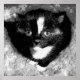Este gatinho fofo entrou nos estábulos do meu marido e acabou ficando lá. Eu alterei digitalmente a imagem para parecer um retrato preto-e-branco de um gatinho de smoking, capturado num momento de curiosidade silenciosa. Os olhos grandes e reflexivos do gatinho olham com atenção, atraindo o foco em meio ao forte contraste entre sua pele escura e suas marcas brancas. As texturas suaves rodeiam o gatinho, melhorando a sensação de calor e solidão, enquanto a paleta monocromática adiciona uma camada de mistério artístico à composição.