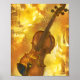 Arte de parede artística para amantes de música apresenta violino melhorado AI em tons de ouro.