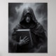 Vestido na sombra e ferrado na fumaça, a figura surge como um sussurro de desgraça. Seus olhos pálidos queimam com intensidade não natural, como se eles, sozinhos, perfurassem o véu entre mortal e eterno. Em sua mão está um tomo preso em símbolos de design proibido — um artefato de segredos que nunca deveria ser desenterrado. Cada linha gravada em seu rosto intacto fala de sacrifício e corrupção, de conhecimento ganho à custa da alma e da sanidade. Olhar para ele é sentir o peso da inevitabilidade, o sentido de que o próprio destino se dobra às palavras contidas no maldito livro que ele carregar.