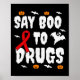 "Diversão do presente de Halloween" diz "Boo" para "Drogas conscientes" fita vermelha