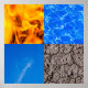 Composição de quatro elementos mágicos: Fogo, Água, Ar e Terra. A quinta é, de fato, a proprietária do produto. Só por diversão