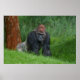 Nesta imagem empolgante, um poderoso gorila prateado fica em relva verde-luxuosa, seu olhar fixado à frente com uma árvore solitária ao fundo.