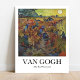 Este poster apresenta uma reprodução de alta qualidade da pintura paisagística de Vincent van Gogh, de 1888, intitulada O Vineyard vermelho. A pintura mostra uma vista de um vinhedo perto de Arles, onde Van Gogh viveu por um ano. A pintura captura as cores quentes das vinhas autóctones e do céu azul, além das operárias que colhem as uvas. A pintura é um exemplo notável do estilo de Van Gogh, com pinceladas dinâmicas e contrastes vívidos. O Red Vineyard é a única pintura que Van Gogh vendeu durante sua vida, para sua amiga e colega artista Anna Boch.