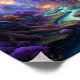 Nessa pintura surreal, a cena se desdobra com uma qualidade de sonho. Torres torres torcem e giram em formas incomuns, seu latido brilhando em tons vibrantes de azul e roxo. As folhas parecem quase etéreas, brilhando com uma luz do outro mundo que contrasta fortemente com o fundo profundo da esmeralda.
