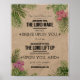 Números versos bíblias 6:24-26: "O SENHOR abençoa-te e mantém-te; O SENHOR faz-lhe brilhar o rosto, E seja gracioso para ti; O SENHOR ergue-se o seu rosto sobre ti, e dá-te paz." Este design apresenta o verso da Bíblia de uplifting dos Números 6:24-26 renderizado em um estilo tipográfico impressionante. O texto destaca-se em relação a um rico pano de fundo de artesanato castanho-rugoso, evocando uma sensação quente e orgânica. Ao redor do verso está um conjunto de verde tropical vibrante e orquídeas delicadas, acrescentando um toque de elegância natural. A folhagem exuberante cria um sentido de tranquilidade e de vida, harmonizando-se com a mensagem de bênção e paz. Esta peça é um lembrete decorativo e inspirador, perfeito para qualquer espaço que encoraje a reflexão e a positividade.
