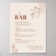 O sinal de Bar é caracterizado por um estilo "boho" com trabalho de arte floral e cor verde e bege neutro.