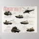 Um poster da era da Guerra Fria que fornece informações sobre os sete principais sistemas militares da União Soviética: tanques, helicópteros de ataque, artilharia mecanizada, plataformas de mísseis e armas antiaéreas.