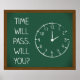 Poster decorativo da sala de aula com o ditado "O tempo passará, você vai" em um fundo de quadro