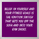"Acredite em si mesmo e nas suas metas de malhação é o interruptor de ignição que te tira do sofá e entra nas suas calçados de ginástica." Felicity Luckey