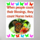 Esta enfermeira dedicada vai tesourar esta adorável borboleta "Quando as pessoas contam suas bênçãos, elas poderiam Enfermeiras duas vezes" design de fotos de www.zazzle.com/myheavenlyblessings Sua Enfermeira número um vai estimar este apreciativo design de Enfermeira em Camisetas, canecas, bebidas, decoração doméstica e presentes adoráveis. Diga à sua encantadora enfermeira que ela significa o mundo para você e que é um anjo enviado de Deus. Todos os nossos designs de Enfermagem podem ser personalizados e personalizados com um nome, data ou evento. Este presente de Enfermeiras preciosos é perfeito para feriados, aniversários e qualquer ocasião.