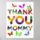 Obrigado Mamãe imagem decorativa de texto contra o fundo branco. Seis borboletas coloridas flutuam em torno da imagem ou sentam em uma letra. Um poster personalizável para decorar seu lugar e +celebrar Dia de as mães, aniversário ou qualquer outra ocasião. Você pode trocar borboletas e colocar algumas fotos em vez delas. Use o botão "Personalizar" para alterar o tamanho da imagem de texto, para realocar borboletas ou para alterar a cor do plano de fundo. Divirta-se, personalize-se e comprar um, e seja feliz!
