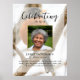 O pôster memorial perfeito para cumprimentar familiares e amigos ao entrarem na celebração da vida de seu ente querido. Especialmente para alguém que ama a natureza e a observação de pássaros - o design apresenta uma foto pessoal quadrada, 5 linhas de texto personalizado e uma foto de fundo de um robin. Você pode facilmente trocá-la por sua própria foto de fundo. Clássico, porém único - este modelo é muito fácil de personalizar e também será uma lembrança memorial maravilhosa.