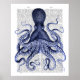 Octopus 3 azul de Fab Funky. Apresenta um polvo azul-roxo com uma página de livro para um fundo.|190413D