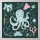 Ilustração de um polvo com elementos subaquáticos. O plano de fundo pode ser personalizado para qualquer cor para ajustado do seu tema!