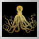 Poster Octopus Dourado de Tinta Preta Costeira Náutica