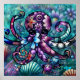 Poster Octopus Floral Teal Roxo Azul Costeira