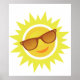 Um sol amarelo brilhante vestindo óculos de sol. Esta design parece realmente eficaz nestes Poster