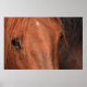 Uma fotografia de um quarto da cabeça de um cavalo. Foto tirada em uma fazenda de Alberta, no Canadá.